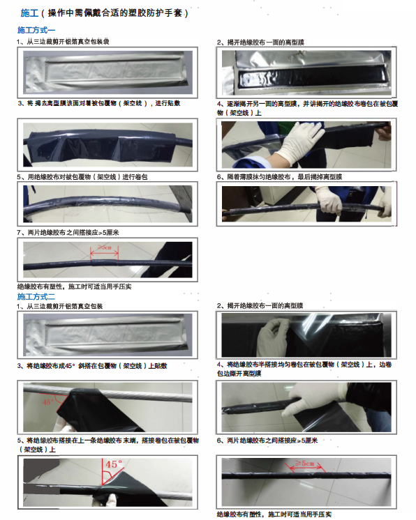 適用范圍:專為10KV架空裸線和絕緣線路中裸露電氣連接點的絕緣防護而設計的可快速施工并能室溫濕氣固化的特殊帶狀片材。