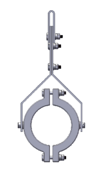 夾具體采用高強度抗磁防腐鋁合金材料,內襯有橡膠墊。電纜可繞懸掛軸轉動。用戶采用鋼絲繩將固定夾懸掛在合適位置,應根據受力選擇合適的布置間距。該固定夾的掛板標配為熱鍍鋅鋼材質,也可選配不銹鋼材質。