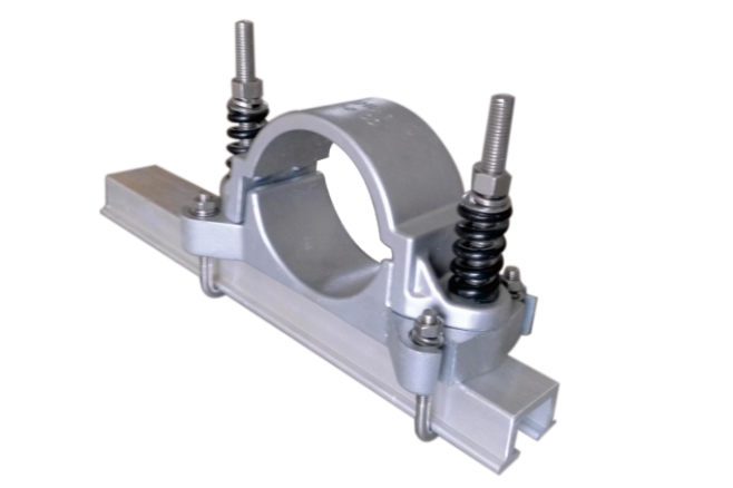 夾具體采用高強(qiáng)度抗磁防腐鋁合金材料,內(nèi)襯有橡膠墊。固定夾采用U型螺栓固定在電纜支架或者橋架上(電纜支架或橋架不需要打安裝孔)。螺栓等緊固件可選用不銹鋼或熱鍍鋅材質(zhì)。該固定夾標(biāo)配帶彈簧,構(gòu)成彈性夾緊裝置,也可選配不帶彈簧。